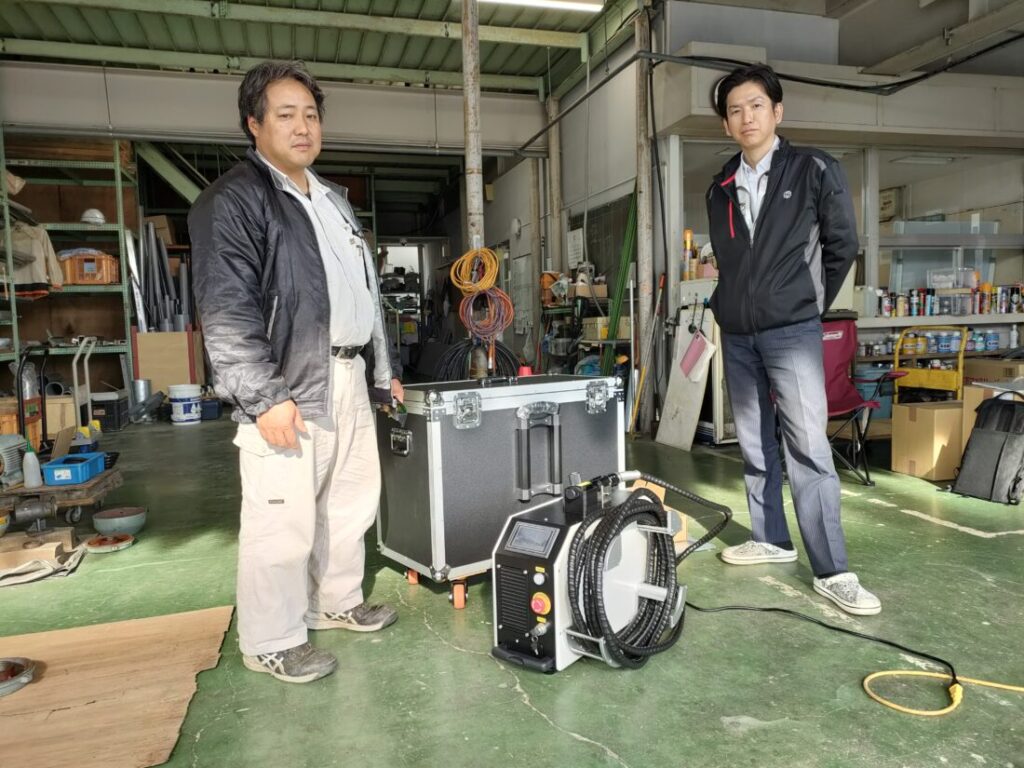 九州藤吉工業様は、レーザー本体からレーザーヘッドまでのケーブル長を延長してより広範囲で作業できるようにカスタマイズ。加えて、輸送する際にレーザークリーナーを収納する専用ボックスを合わせてご注文いただきました。