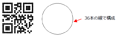 36本の線で構成された円です。輪郭が綺麗な円になりますが、塗潰しがある場合は「円(荒い)」よりも計算時間が長くなります。円の場合で特に印字品質重視の場合のみこちらをご利用して下さい。