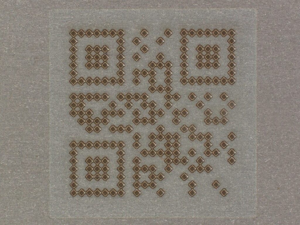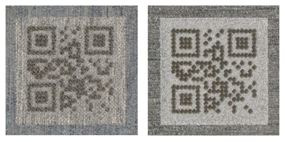 アルミ素材へとても小さい2mm角のQRコード(ひし形状のドット)を印字しました。